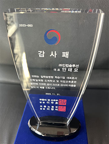 산학일체형 도제학교 우수기업 CEO 감사패 수여